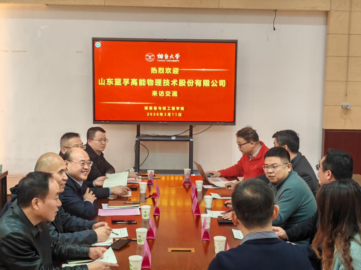 3月11日下午,山东蓝孚高能物理技术股份有限公司(以下简称“山东蓝孚”)董事长苗翠波率团访问烟台大学核装备与核工程学院。学院党委书记李军、院长刘仲礼等热情接待了来访嘉宾,双方围绕深化校企协同、推进产学研融合进行了深入交流。此次来访是继双方签订校企合作协议及激励基金捐赠后的又一次高层互动,旨在进一步夯实合作基础,推动技术合作、人才培养与成果转化落地见效。