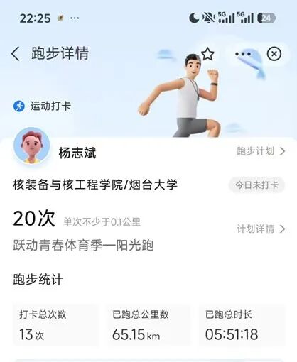 跑步总里程:65.15公里